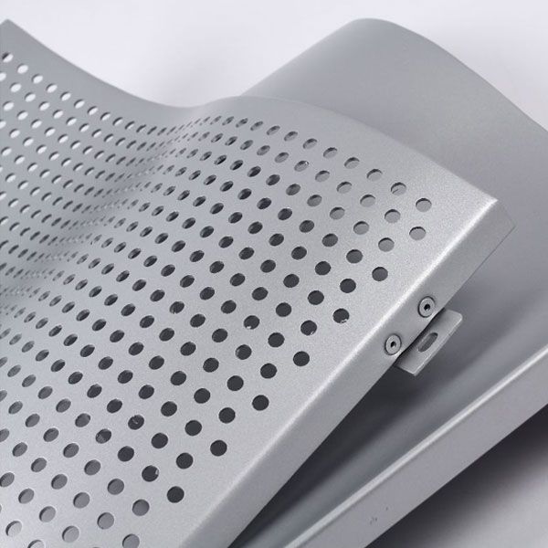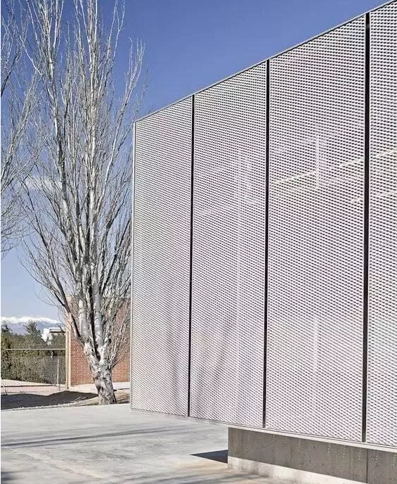 與常規鋁單板相比,沖孔鋁單板的特征就是表面形狀各異的沖孔(包括圓孔、方孔、五角星、六邊形孔等),裝飾效果突出,也能夠在一定程度上起到降低噪音的作用。集裝飾性與實用性于一體,沖孔鋁單板在工程裝飾中使用的越來越多。