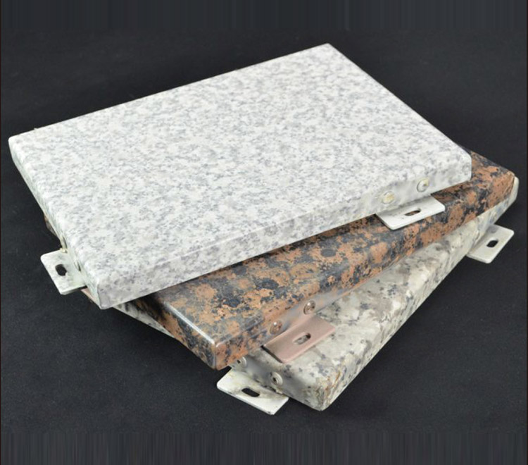仿石紋氟碳鋁單板的主要特征是鋁單板表面逼真的石紋色,裝飾效果喜人,且質量輕、安裝方便,幾乎可以替代大理石這種幕墻材料。它主要通過熱轉印等工藝,把石紋色轉印到鋁板表面,然后再噴上氟碳罩光漆,經(jīng)過多次噴涂和烘烤,終客戶定制的石紋效果。