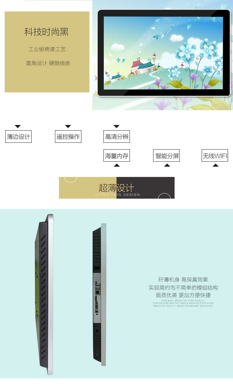 - 安裝方式:壁掛式,可橫屏安裝也可豎屏安裝