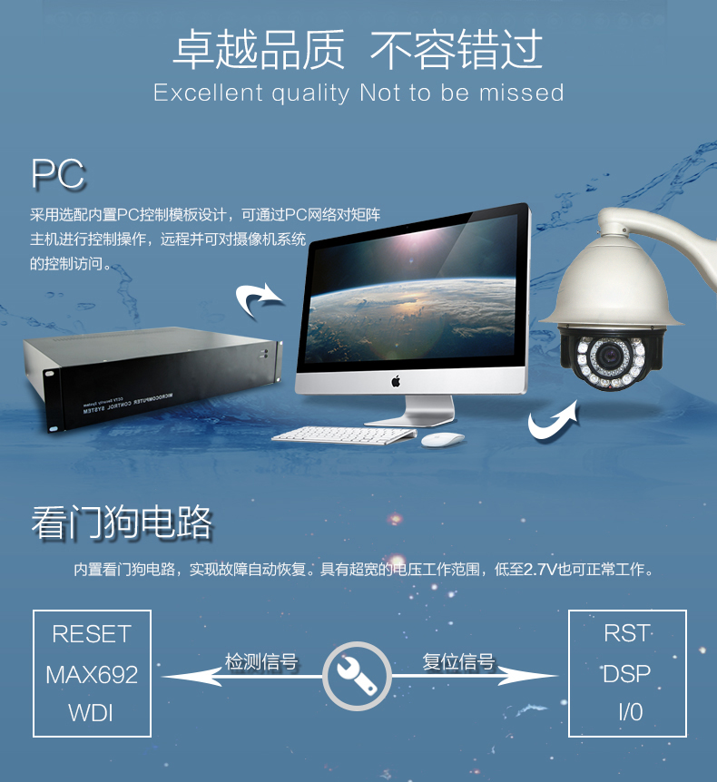 ★ 內(nèi)置控制碼分配器,無需轉(zhuǎn)換器即可直接控制智能高速球;實(shí)現(xiàn)了控制信號的放大,增加了系統(tǒng)的整體控制距離,同時實(shí)現(xiàn)了控制信號的分區(qū)隔離,某路設(shè)備出現(xiàn)故障不影響其它設(shè)備;