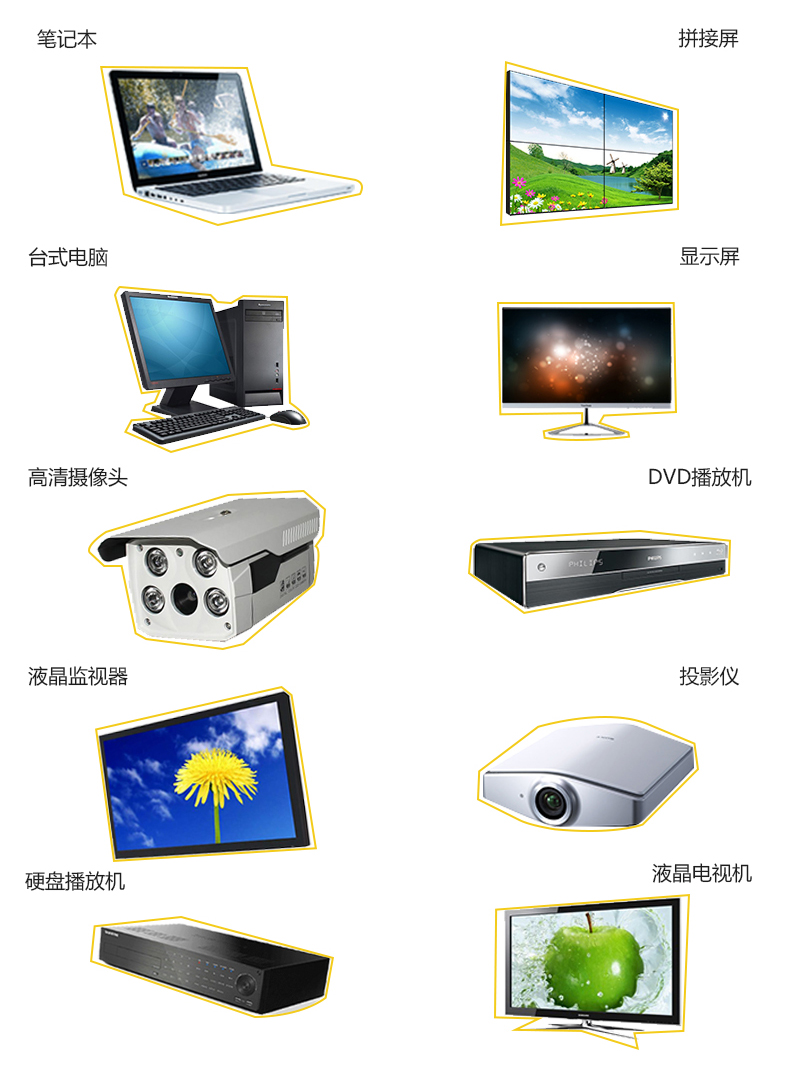 - 支持信號類型有:VGA、RGBHV、RGBS、RGsB、合視頻、S-視頻、分量視頻。